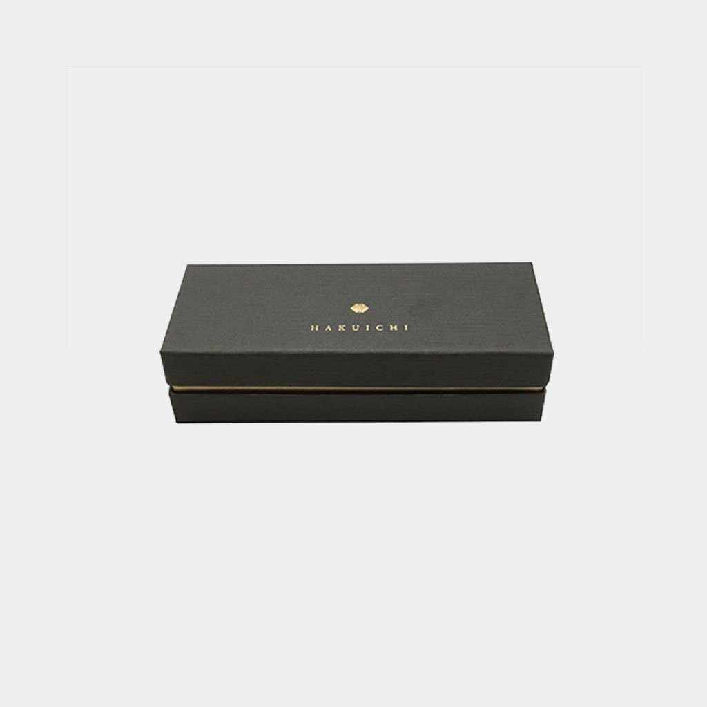 高級な金箔を贅沢にあしらったボールペンなので、手元に届くときもひときわ特別感にあふれています。黒のケースにはブランド「箔一(はくいち)」の名前が刻まれていて、箱をあければ光沢のあるクッションとリボンでしっかりと固定されたボールペンが現れます。