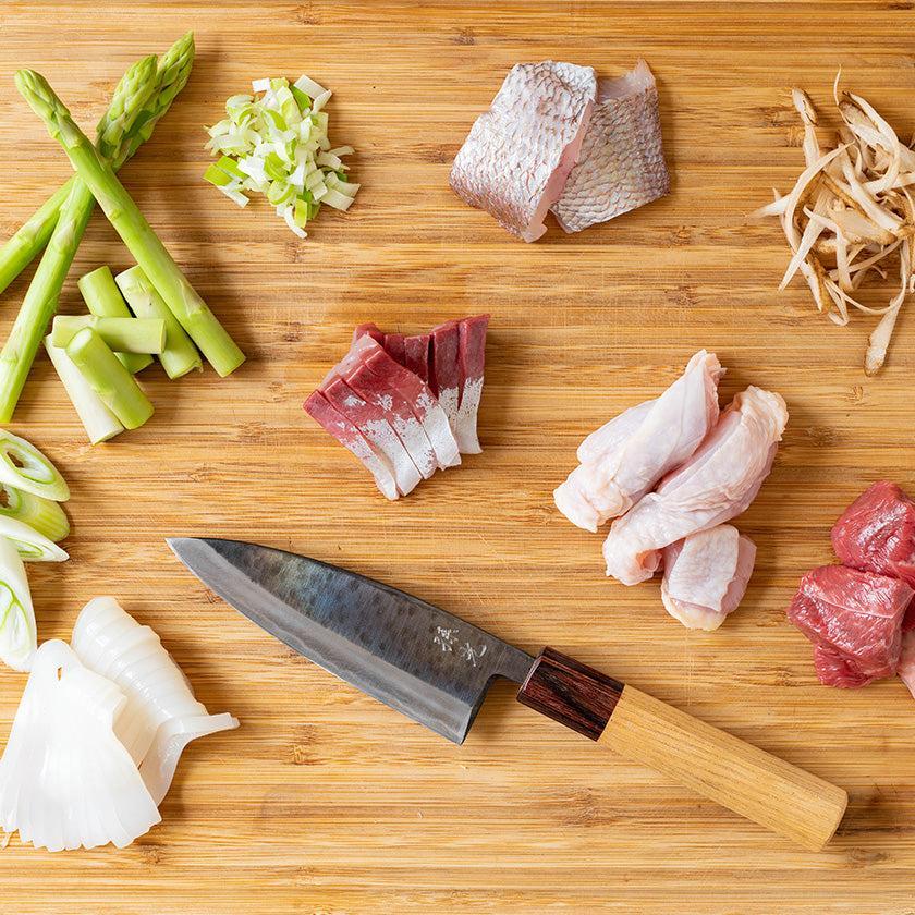 4代にわたって野鍛冶の文化・技術を継承する、石川県能登町・ふくべ鍛冶の出刃包丁です。イカを手早くさばくために生まれた包丁を元に、魚や肉、野菜などさまざまなものを切りやすいよう、素材や大きさにこだわって作られています。料理好きな方はもちろん、釣り好きな方、アウトドアで荷物を減らしたい方にも喜ばれる逸品です。