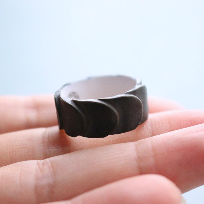 鱗をモチーフにしたエレガントなリング(ブラックマット)です。