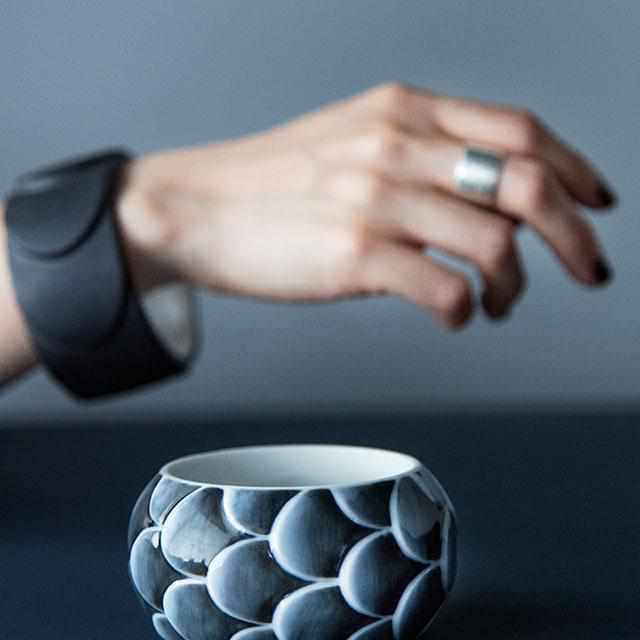 日本の伝統的な文様である鱗からインスピレーションを受けた、磁器のリングです。