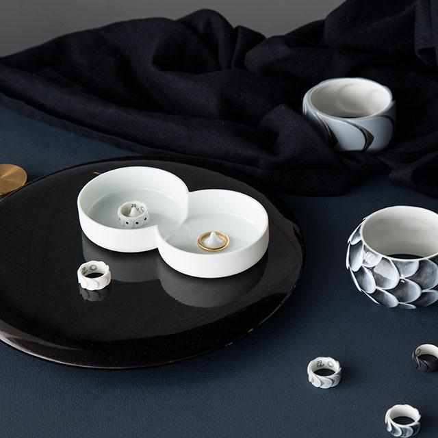 日本の伝統的な文様である鱗からインスピレーションを受けた、磁器のリングです。