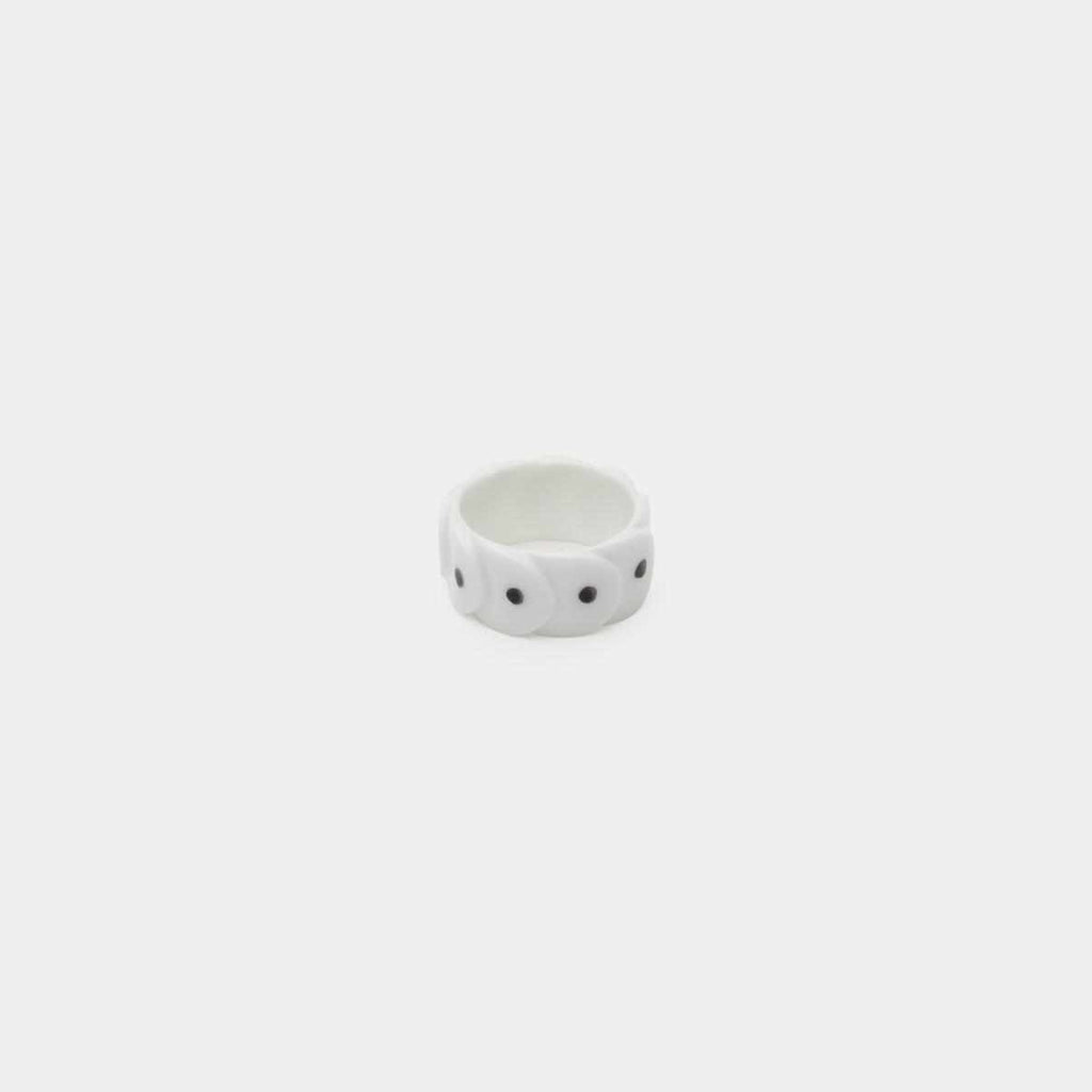 鱗をモチーフにしたエレガントなリング(ホワイト/ブラックドット)です。