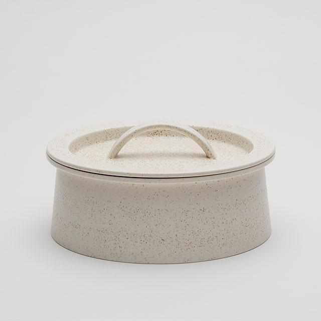 直火で使える磁器のクッキングポット(ホワイトスプリンクル)です。