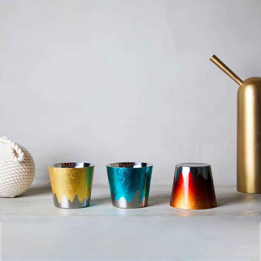 新潟県燕三条のステンレスに、金沢の箔押し技術を施したきらびやかなカップです。高級感や上品さのあるFUJI CUPは、使わないときに逆さまにすると、伝統技術のコラボレーションで表現された”富士山”の姿が楽しめます。ゴールド・ブルー・レッドの3種類から、受け取る方のイメージに合ったカラーが選べます。