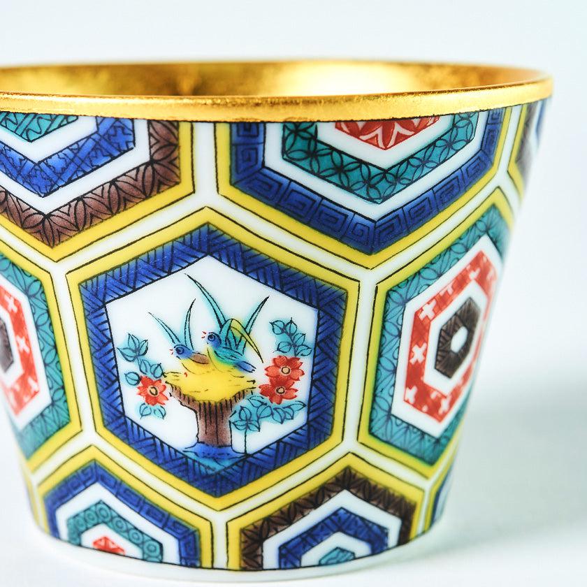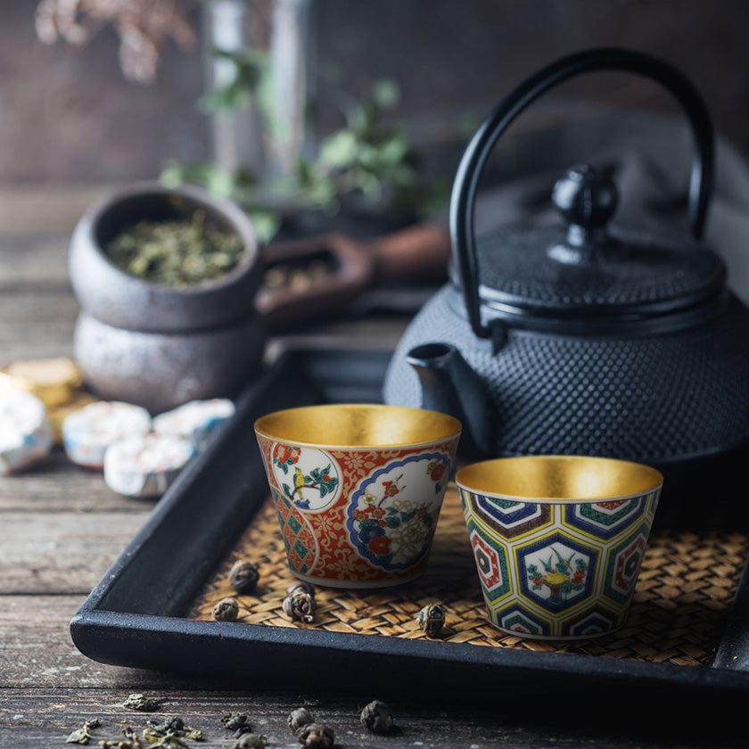 金沢箔の輝きに負けないほどの豊かな色彩をもつ九谷焼がコラボしたカップは、伝統的な美しさもありながらモダンで粋な逸品。特別感あふれるカップは、食卓を華やかに、かつその美しい彩が空間をぐっと引き締めてくれます。
