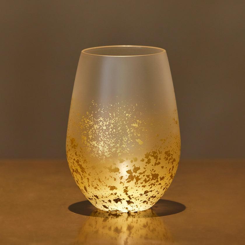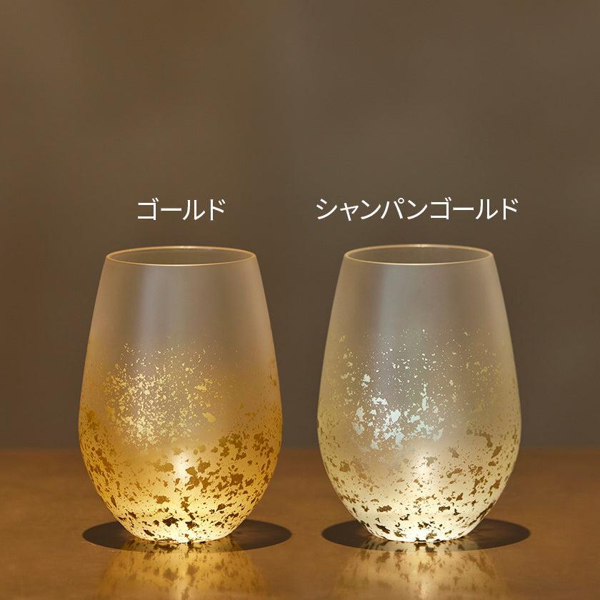 星空のような金箔の輝きに加え、ぽってりとした形がかわいいグラス!