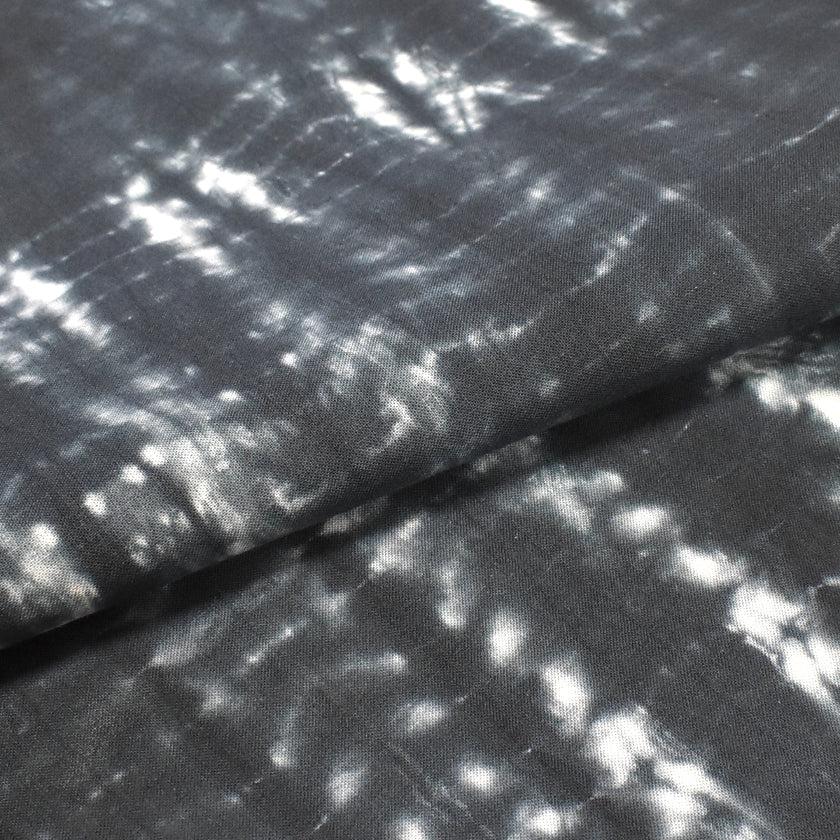 生地を丸棒に上から下へ糸をらせん状に巻きつけて、表面に見えている部分だけを染める竜巻絞りがモダンな印象です。