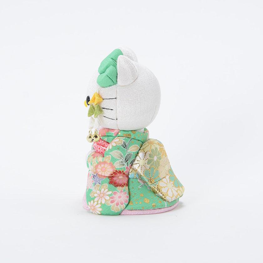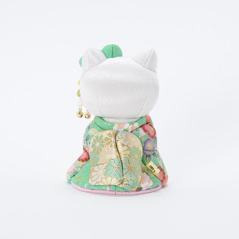 キティちゃんが、江戸木目込み技法により、かわいらしさと上品さが際立つ招き猫に。