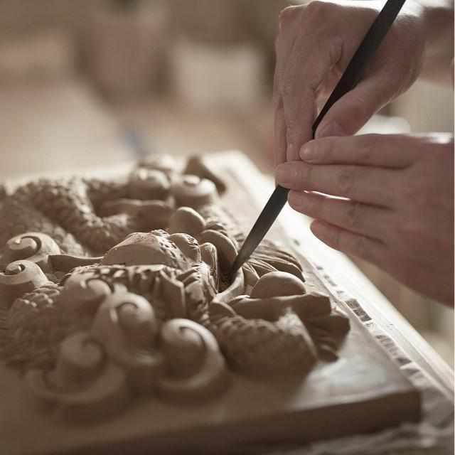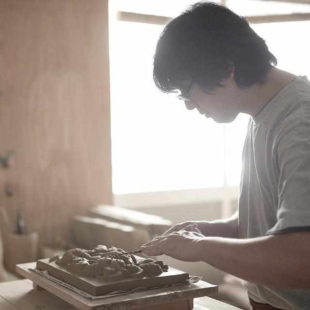 「先代の後を継ぎ、鬼師になる」。物心ついた頃から、 漠然とした覚悟があったという。そんな彼は手造り であることへの想いも強い。好みでもある光沢感あ る仕上がりを表現するため、ヘラや指を使った入念 な仕上げにこだわる。
