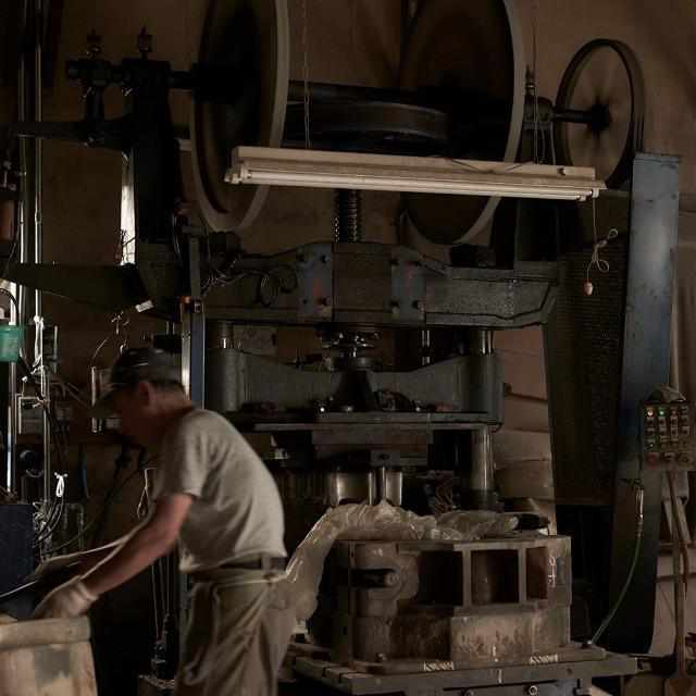 一彫りで仕上げる「ヘラの一刀彫り」に自信アリ。生み出された作品は、どこか荒々しさを残した迫力に満ちている。「1400年もの歴史が紡いできた伝統を未来に遺したい」。鬼瓦の伝統的な製造技術を生かした、鬼瓦以外のオリジナル製品の制作、そしてその技術やパフォーマンスを世界に発信していくことが目標である。
