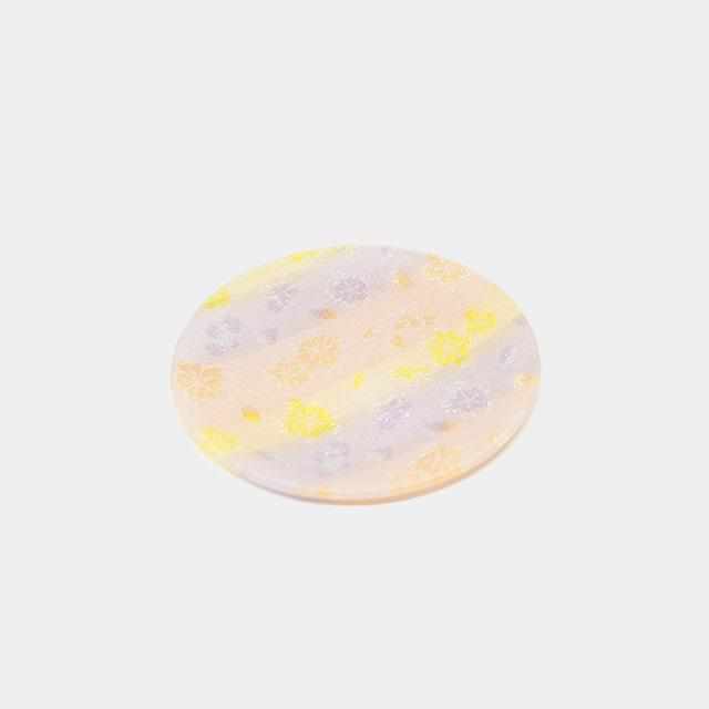 西陣織工業組合に認定された西陣織に特殊なガラスコーティングを施したお皿で、ピンクをベースにした、日本を代表する桜の中皿です。