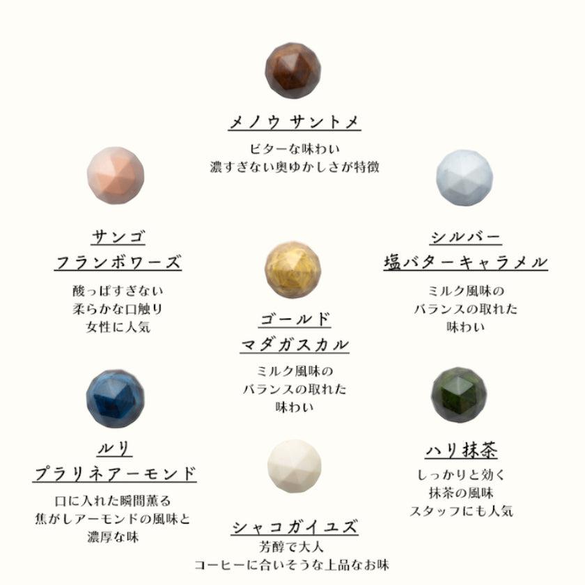 色味や味にこだわり抜いたチョコレートひとつひとつも、7つの宝物のように美しい仕上がりです。