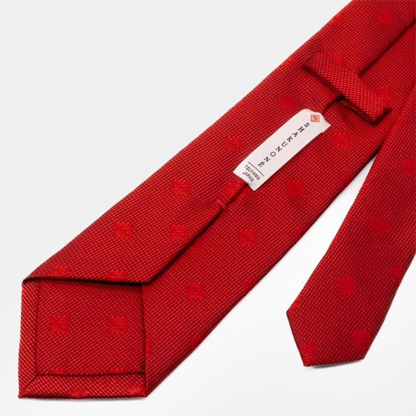 大人ぽっく上品な印象を与える深紅のネクタイ