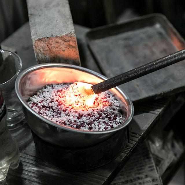 熟練の職人たちが伝統の技法「宙吹き」を駆使し、ガラスを五層に巻き付けることで立体感のある作品に仕上がっています。