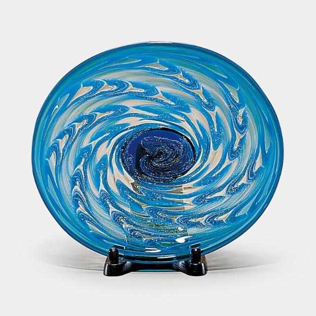 津軽海峡の荒々しい海を切り取った大皿で、うねる海に立つ白波や海流の様子を円を描くように製造することで表現しています。