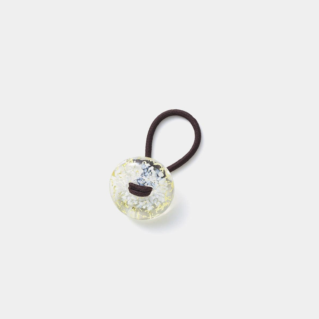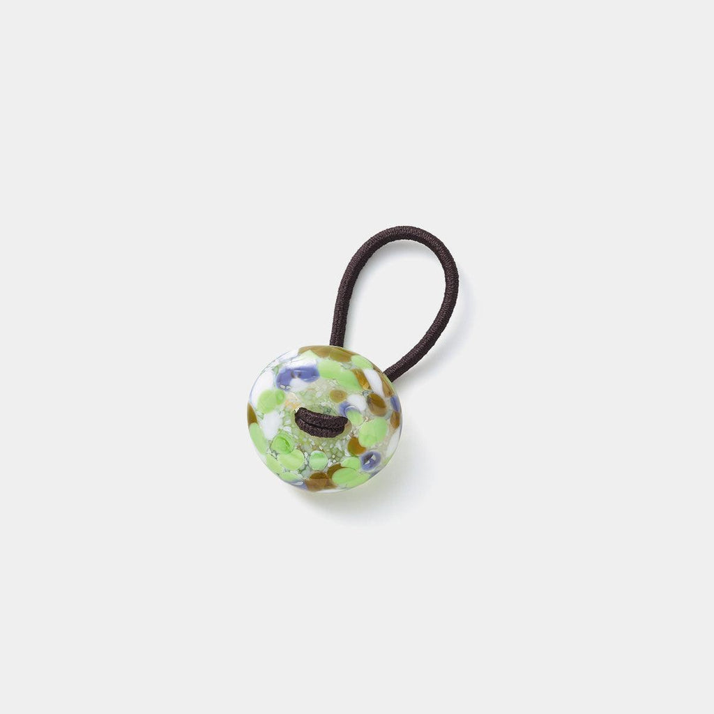「ヘアドロップ ヘアゴム」は、小粒のガラスに淡い色を溶かし込み、水滴のような丸みと光の反射が髪元をそっと彩るアクセサリーです。