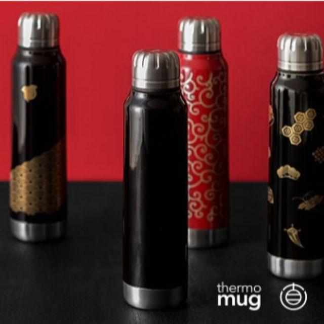 ブラックの本体に描かれたゴールドの漆模様が高級感にあふれた逸品。ボトルの文様そのものは古くから日本に伝わる絵柄なのに、どこか新しさも感じるのはやはりサーモマグとのコラボ商品だから!スリムな形状の水筒は、ちょっとしたお出かけやビジネスシーンなどどんな時にもお供してくれる万能アイテム。300mlというほどよい容量もつかいやすさの秘訣です。