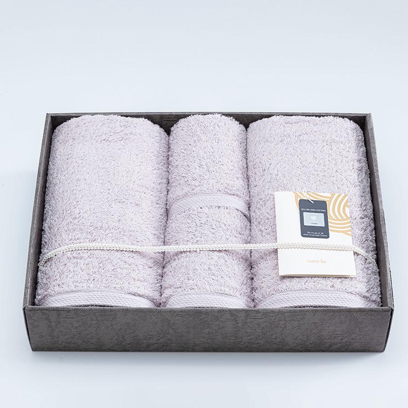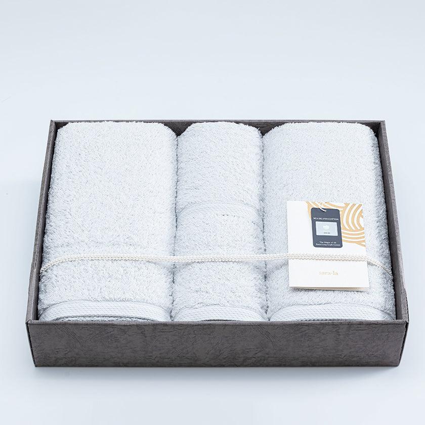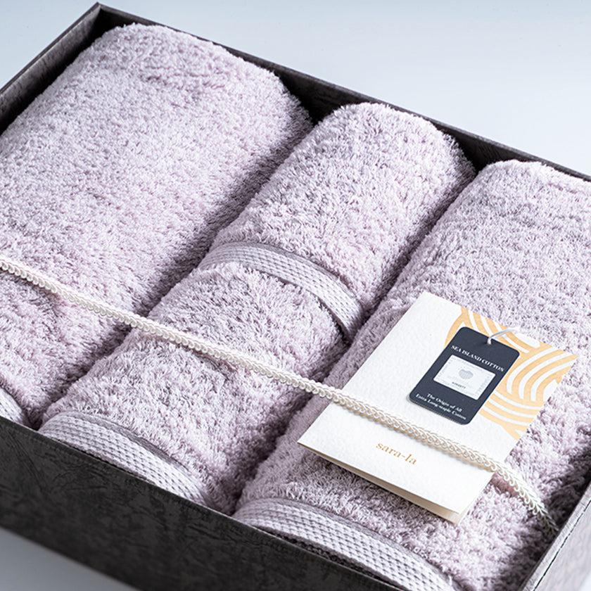 見た目も肌ざわりもよいラグジュアリーなタオルセットは、贈る相手の喜ぶ笑顔が浮かびます。