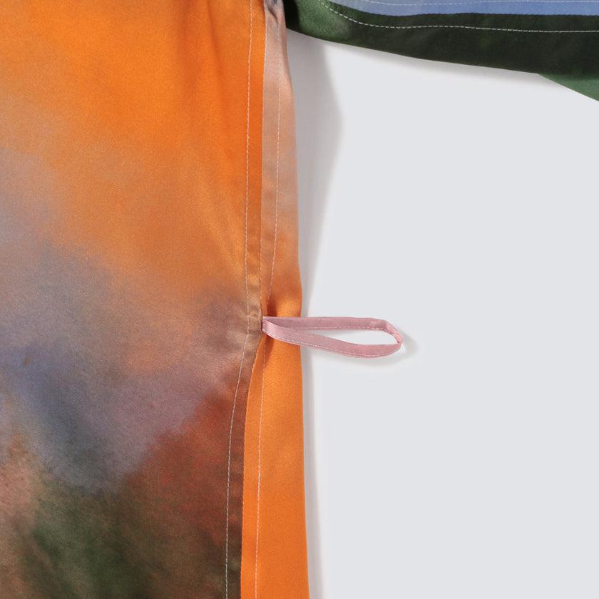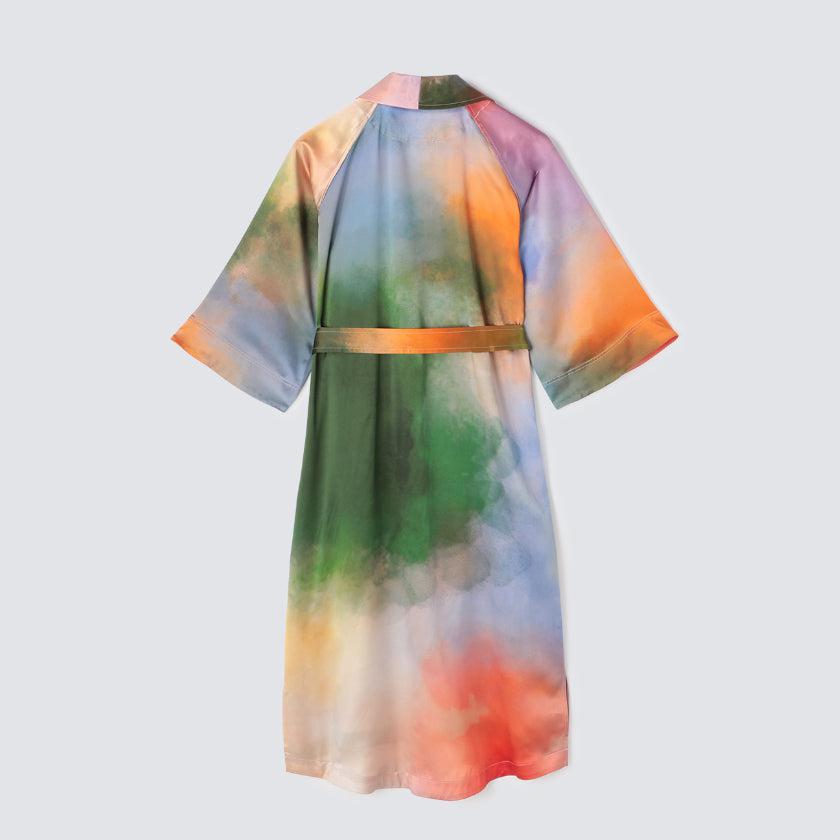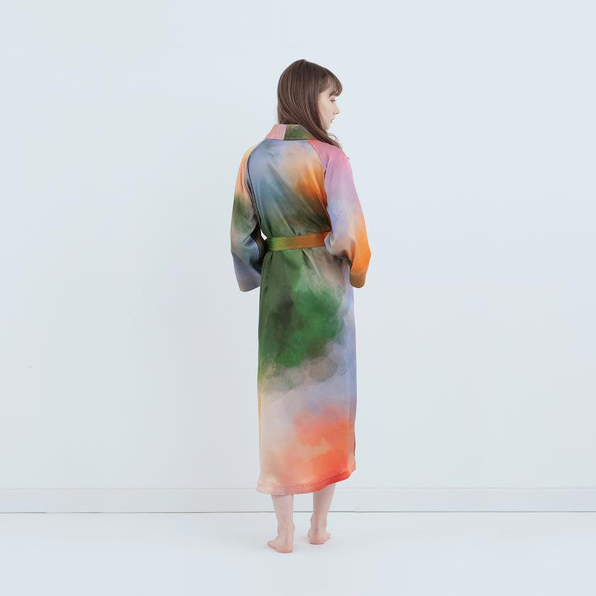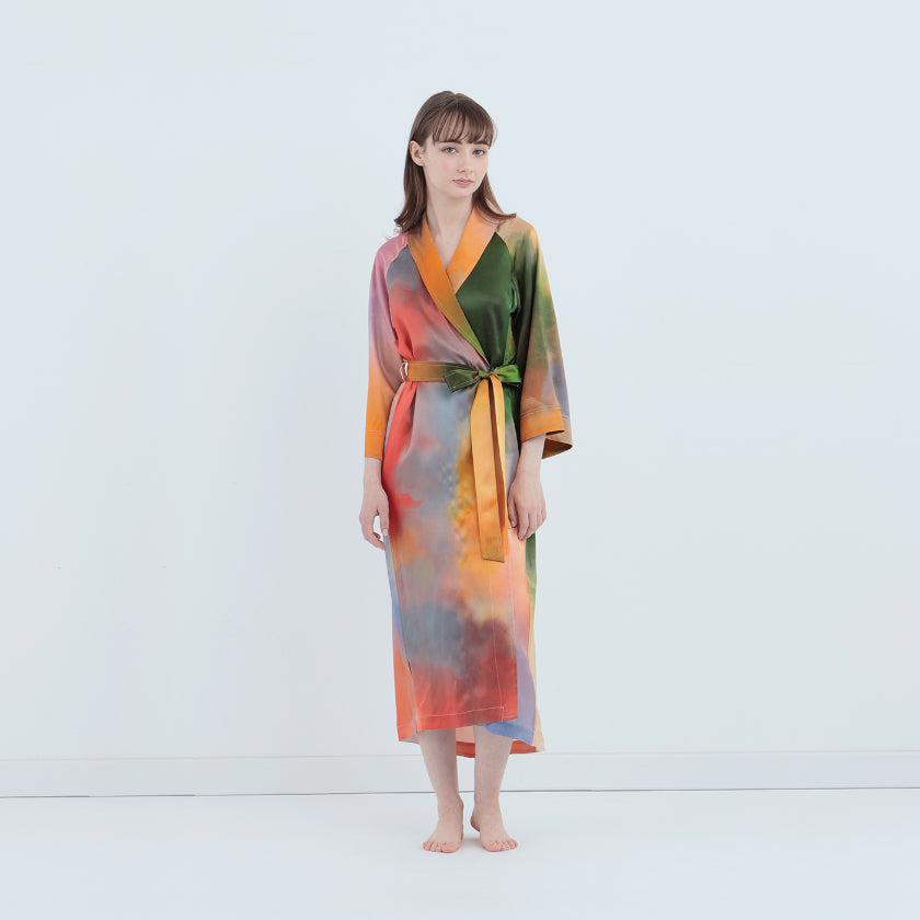 水彩画のような色彩が美しい生シルクガウンです。