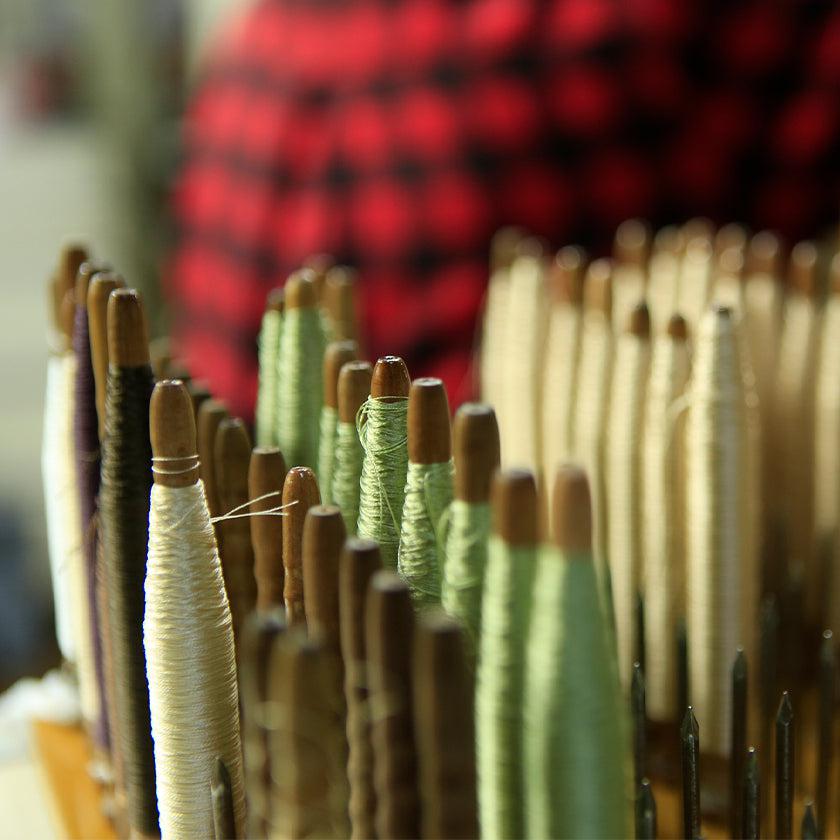 博多織の技術を最大限活かした織物に、ひとつひとつ手縫いで縫製し、丁寧に仕上げました。