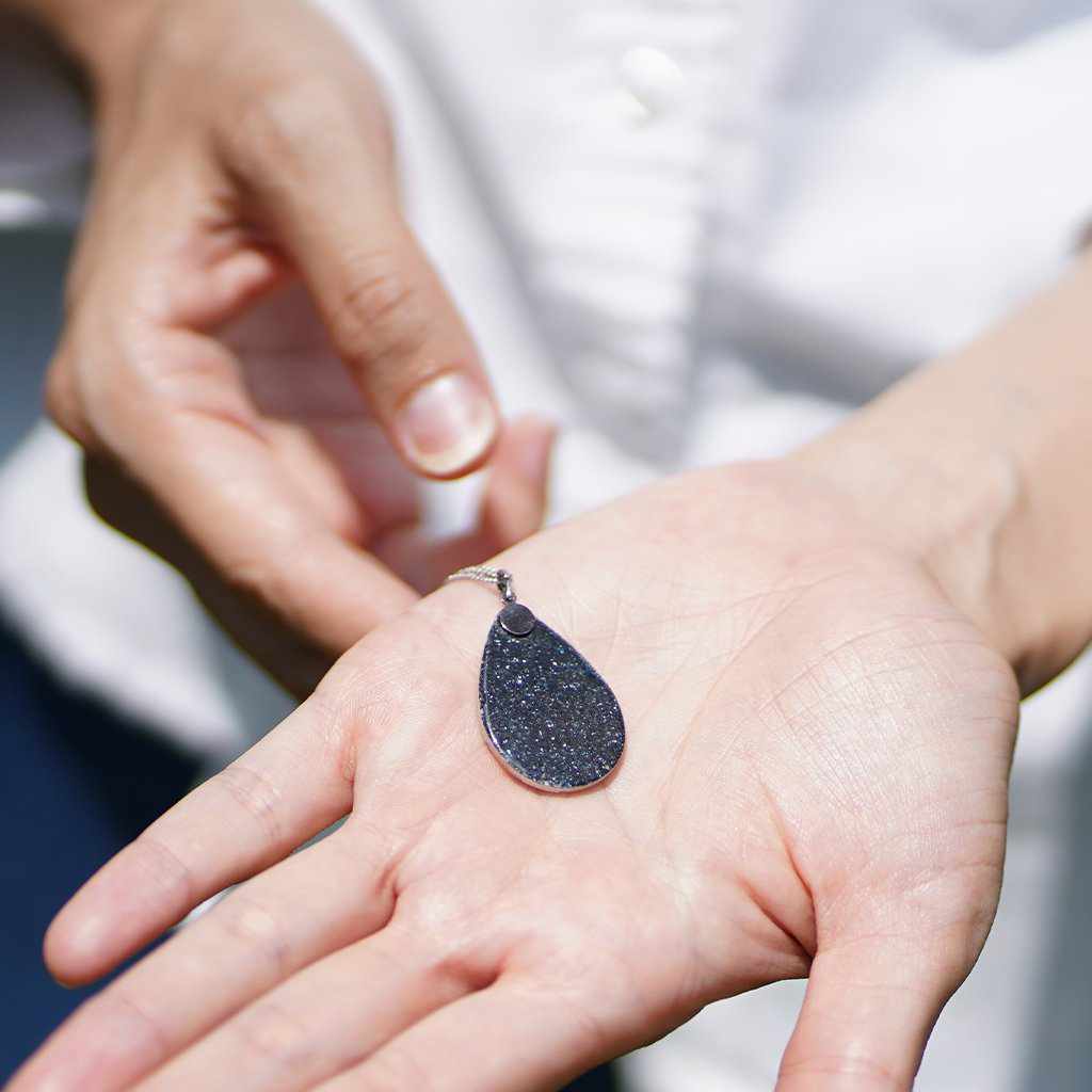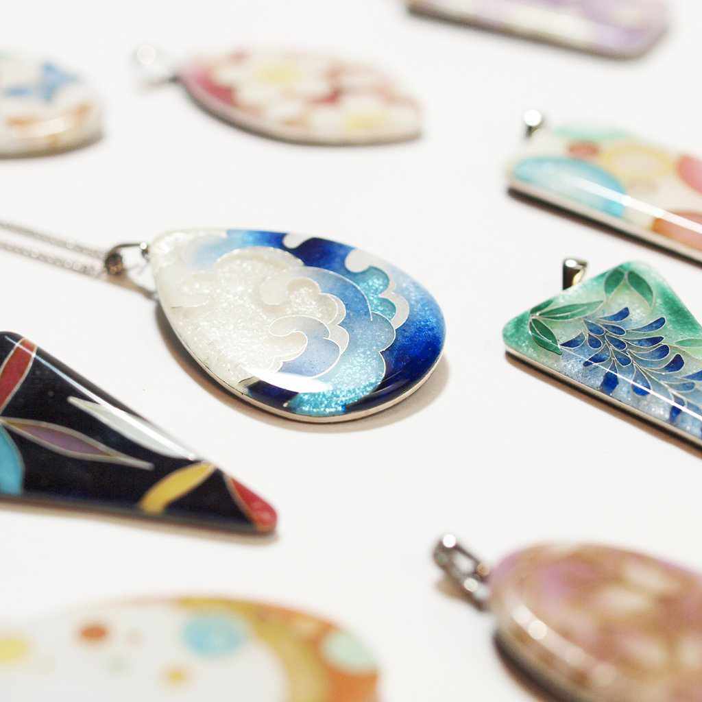 尾張七宝の魅力を手軽に楽しめるように、洋服ともコーディネートしやすいペンダントを作りました。