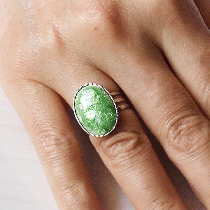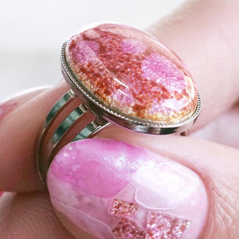 フリーサイズのオーバルデザインリングで存在感たっぷり。