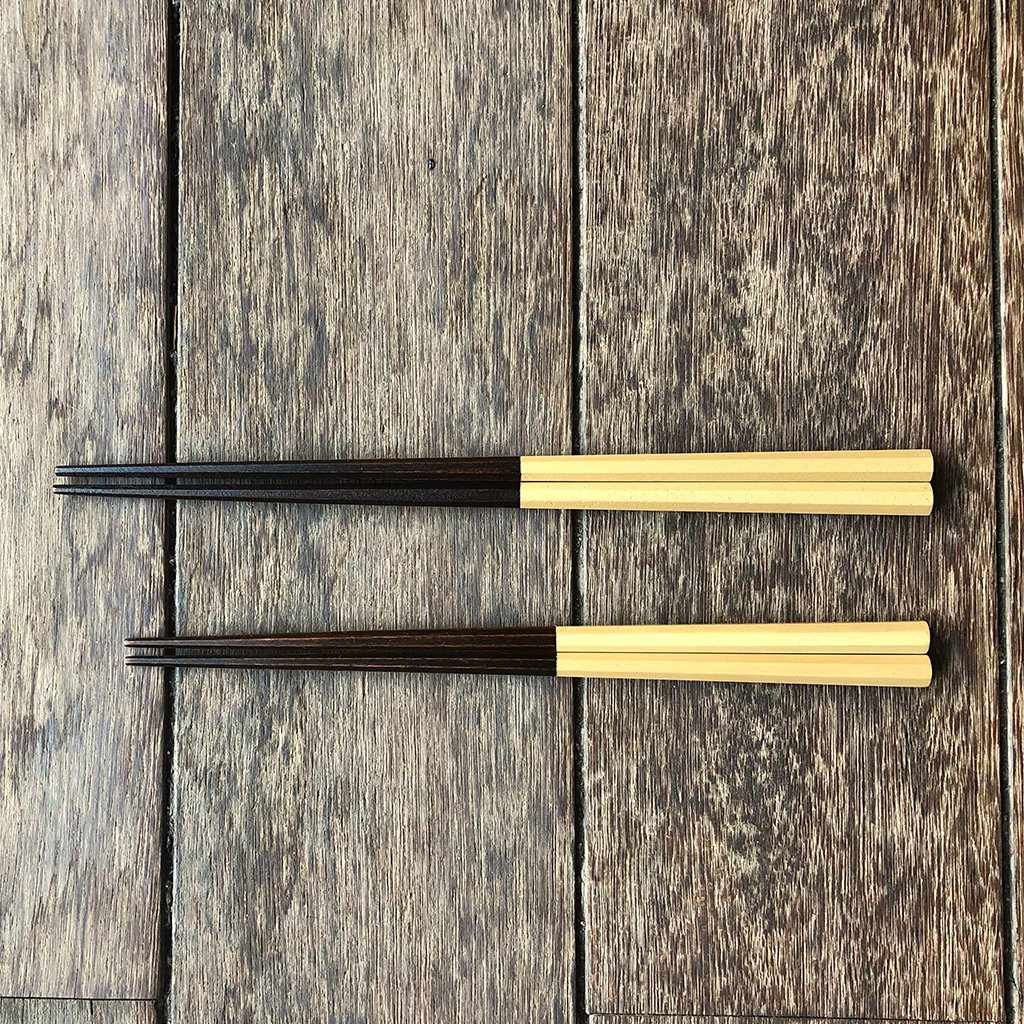 箸の長さは2種で、23cmと21cm。23cmは男性用の一般的な長さ、21cmは女性用の一般的な長さ。小学生や中学生などのお子様も、21cmが使いやすいサイズ感です。