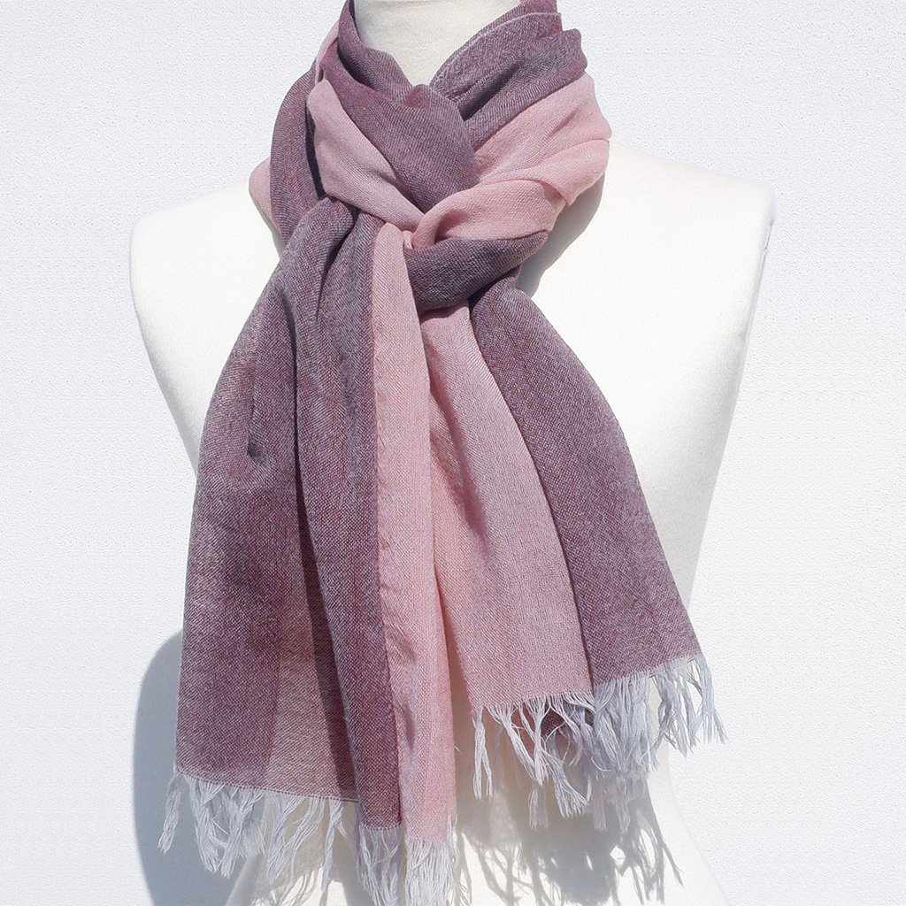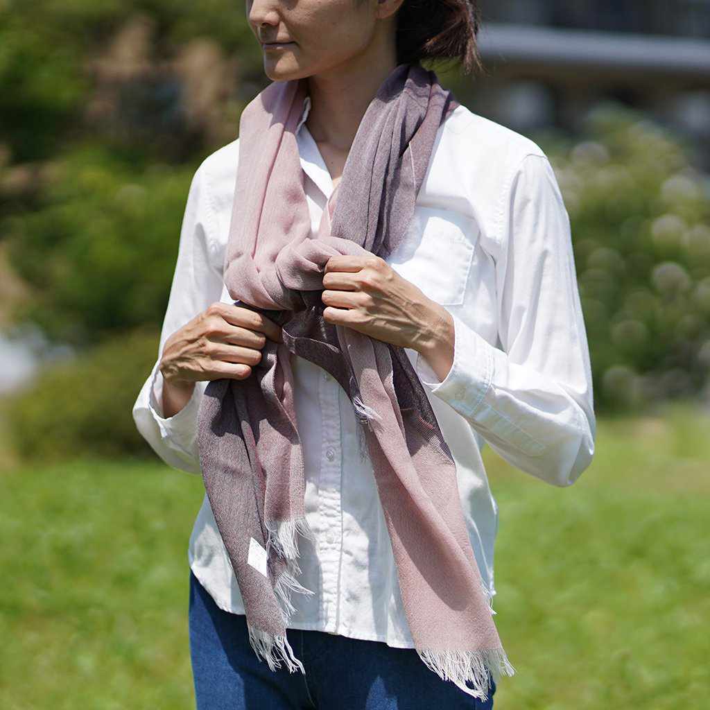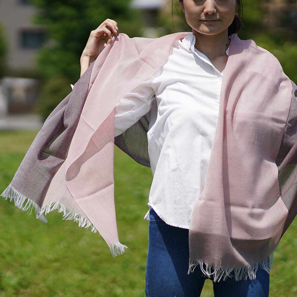 【ストール】KASANE 小豆色 (ペールピンク×ラセットブラウン) | 郡内織物 | 富士桜工房
