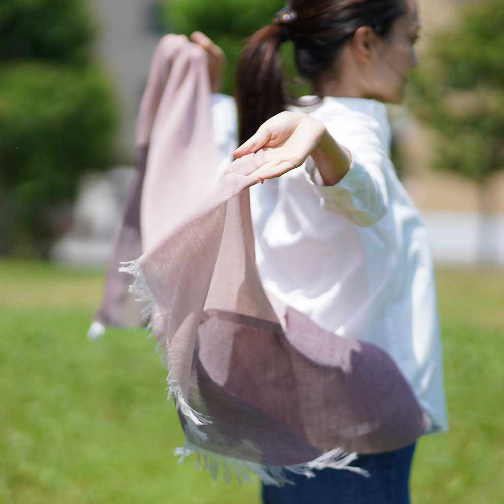 肌触りの良い上質なウールを100%使用し軽やかに織り上げた、2色合わせのウールガーゼストールです。