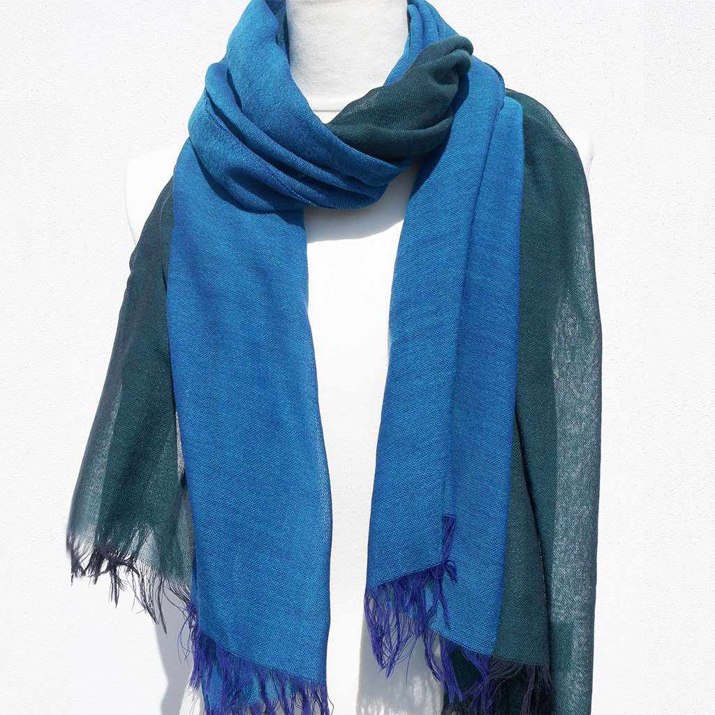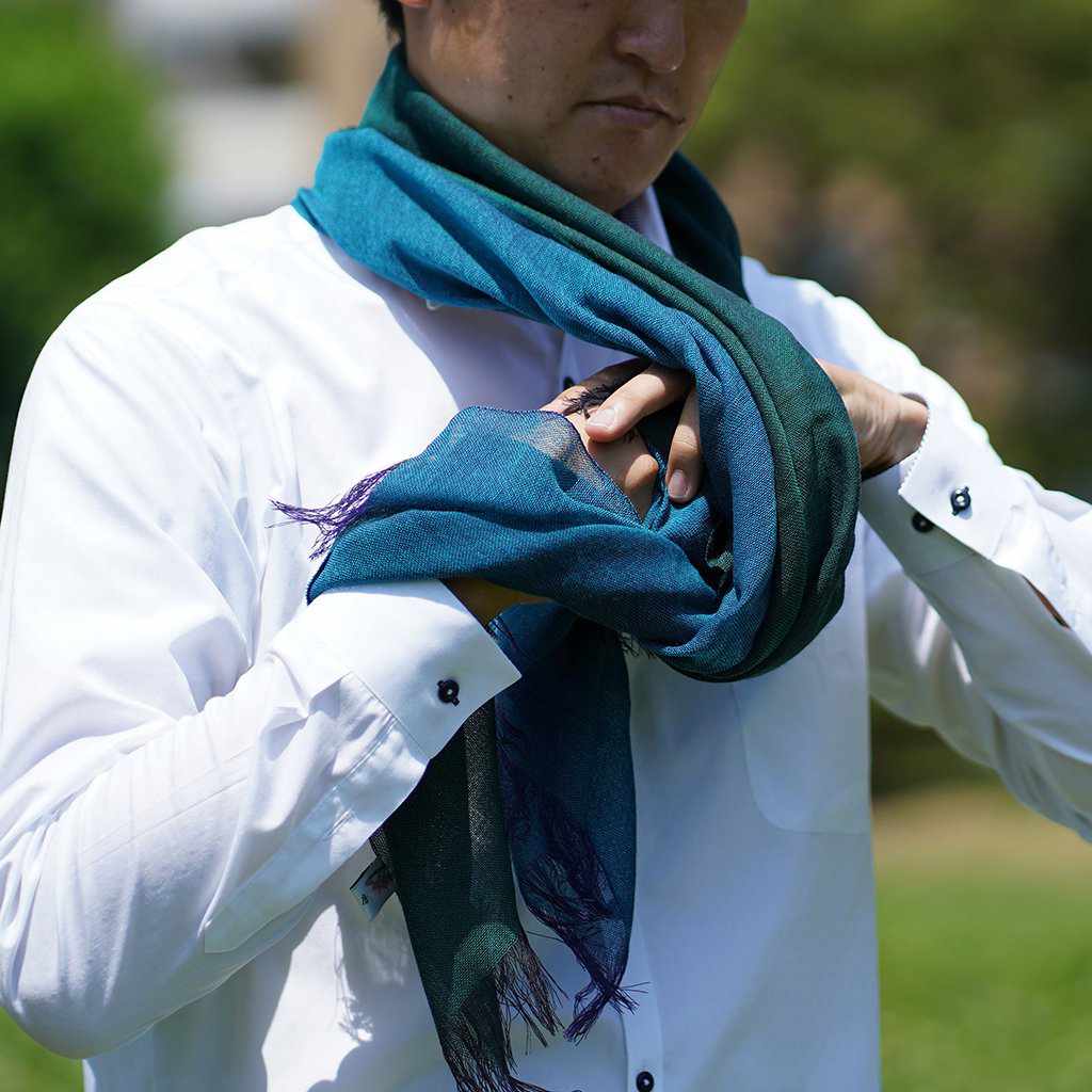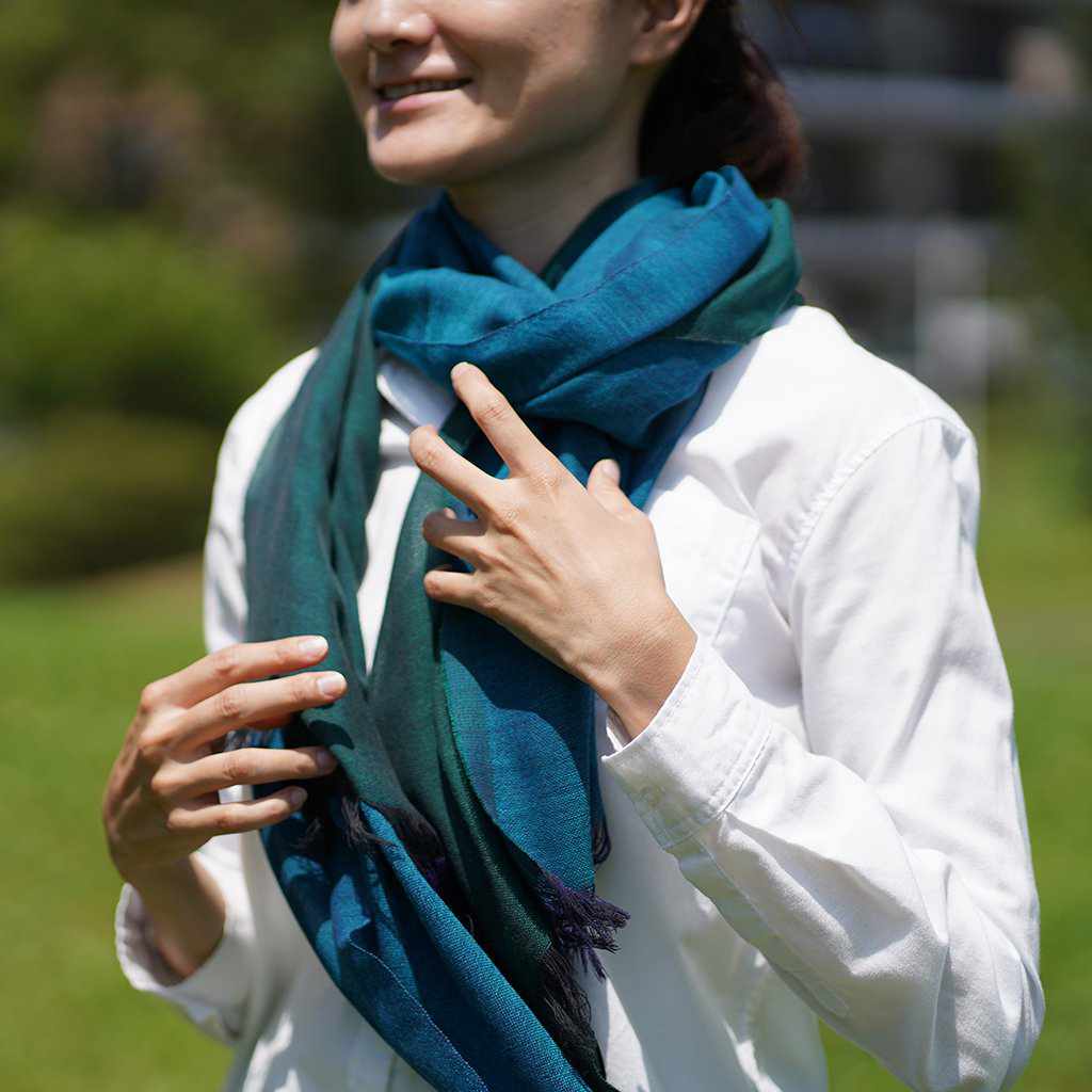 【ストール】KASANE 孔雀色 (ピーコック×クロムグリーン) | 郡内織物 | 富士桜工房