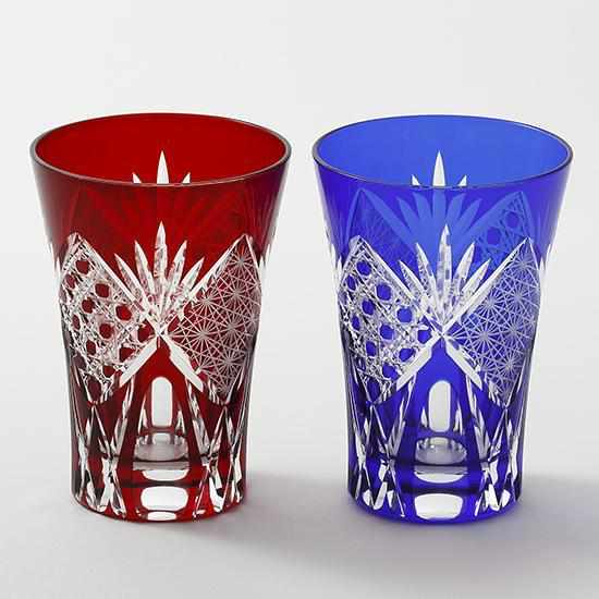 国の伝統的工芸品、東京都の伝統工芸品に指定された江戸切子のペアグラスです。
