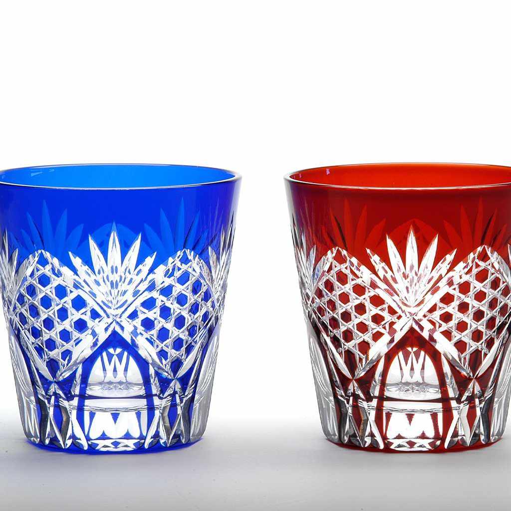 国の伝統的工芸品、東京都の伝統工芸品に指定された江戸切子のペアグラスです。