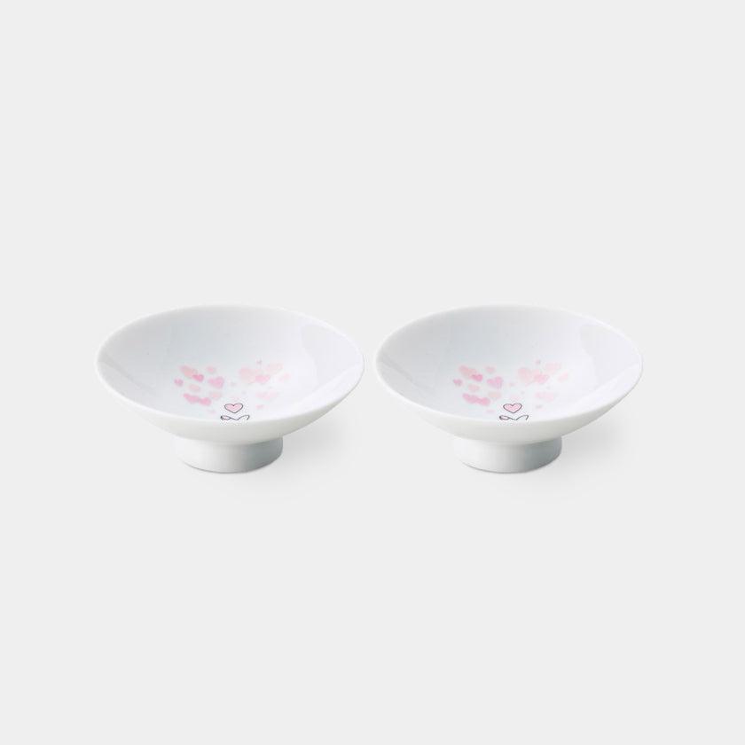 約17度以下の飲み物を入れると、「きゅんですポーズ」から美しいハートが飛び出す平盃ペアセットです。