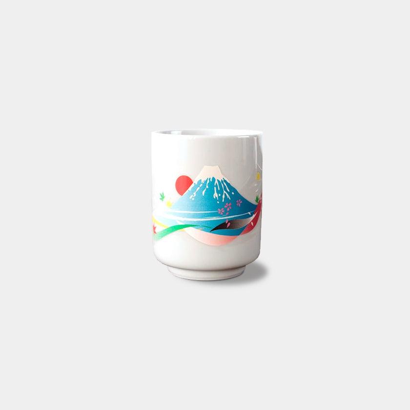 約45度以上の温飲料を注ぐと、鮮やかな富士山が現れる楽しい温感シリーズの湯呑みです。