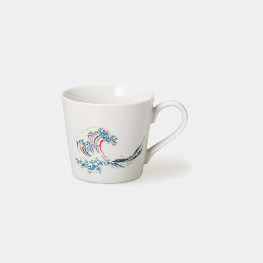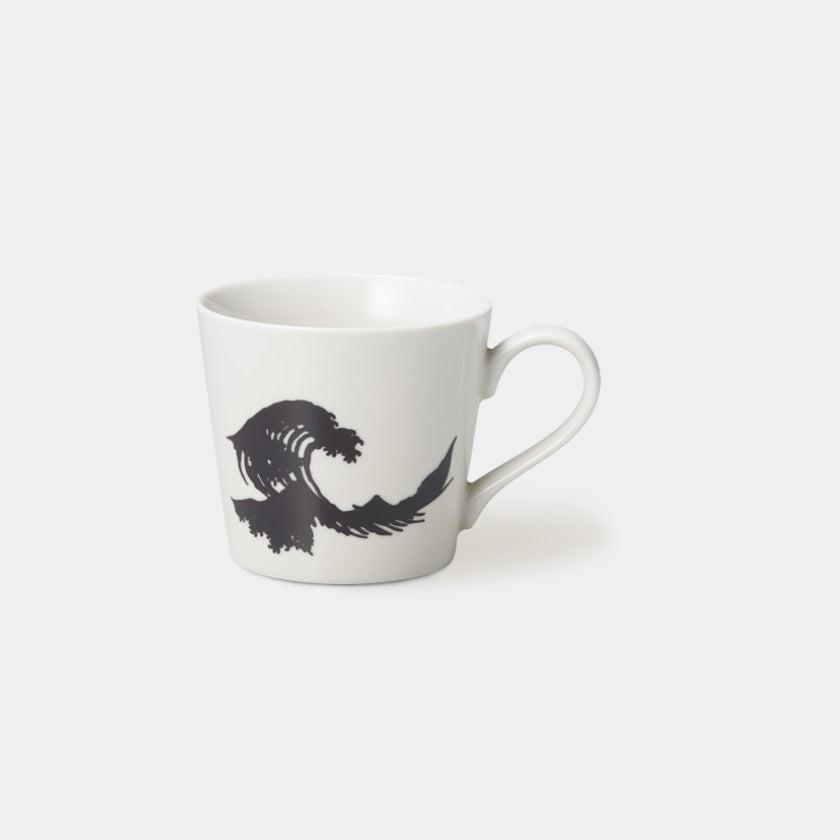 約45度以上の飲み物を入れると、黒いシルエットが鮮やかな北斎の波に変身する温感シリーズのマグカップです。