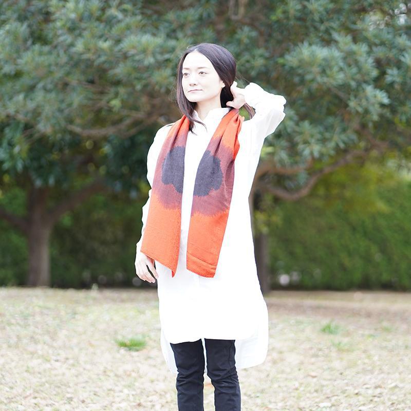 【絞り染め】三毳山麓工房 ストール ナスカ地紋 オレンジ
