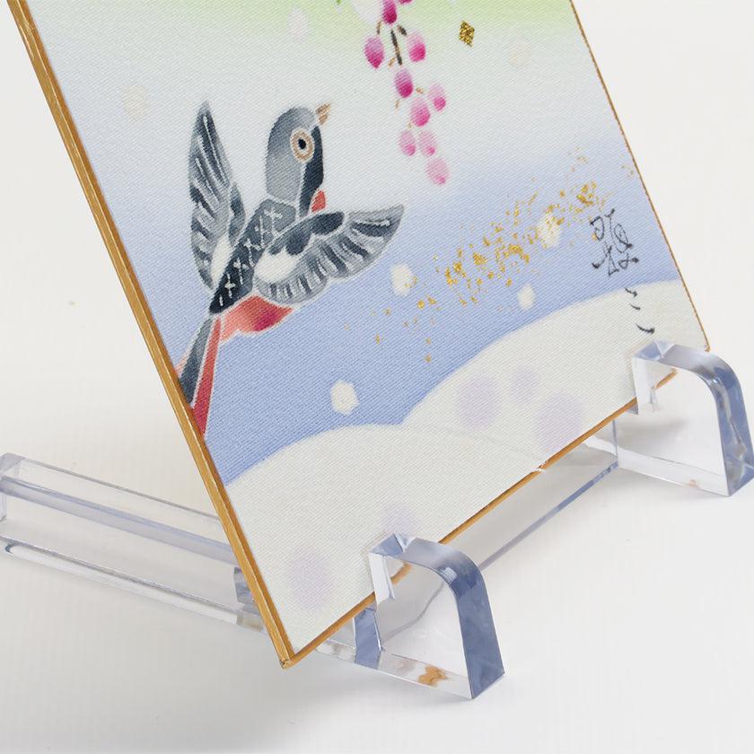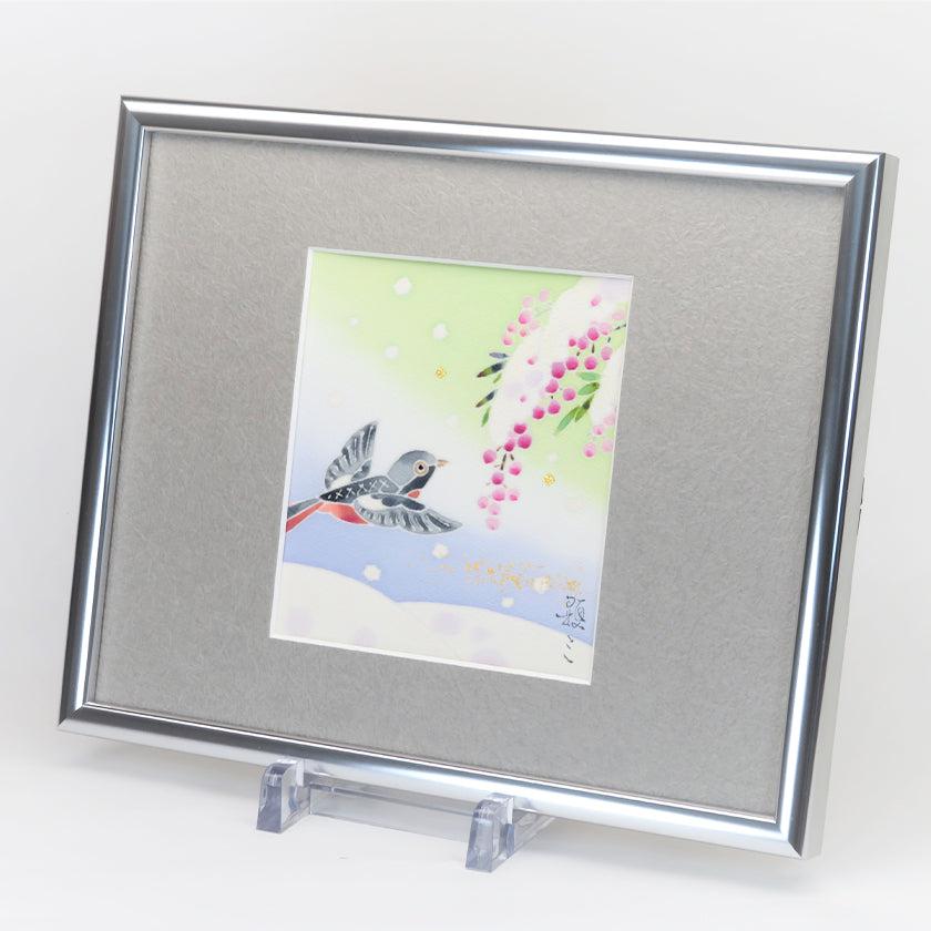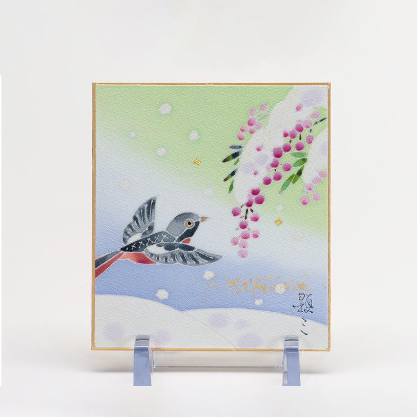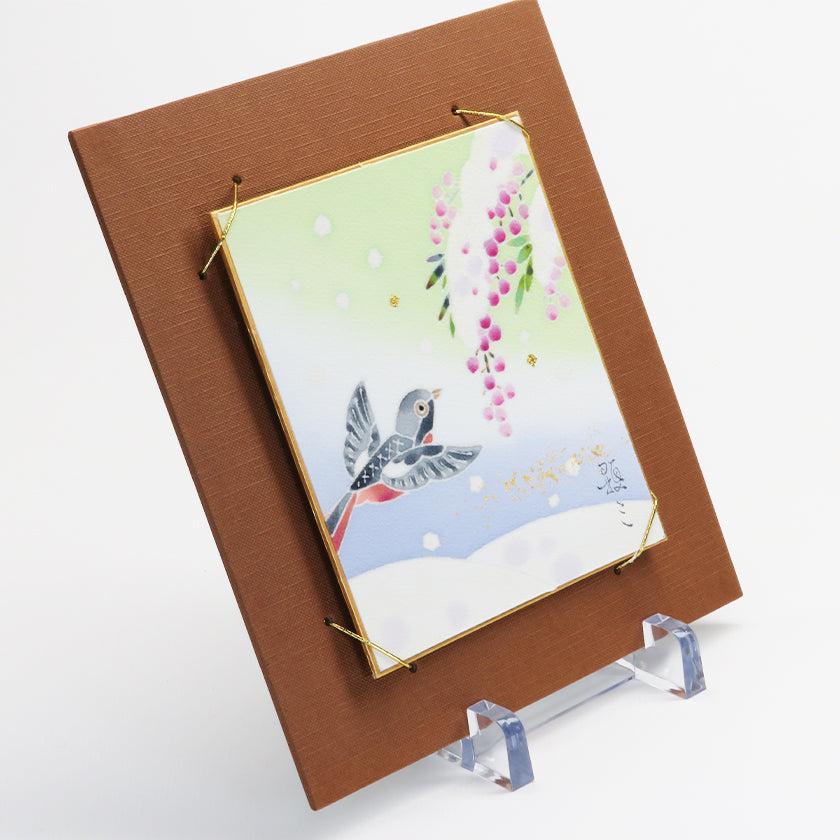 | 備考 | 色紙掛け、台は付きません。既製の色紙掛けに入れて掛けることができます。 写真は額に納めた参考イメージです。 加賀友禅で染め上げた生地を裏打ちし色紙に表装したものです。 |