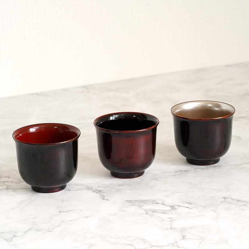 木製漆塗りのぐい呑は持った時に熱すぎず、手にほんのりとしたぬくもりが伝わり保温性にも優れています。