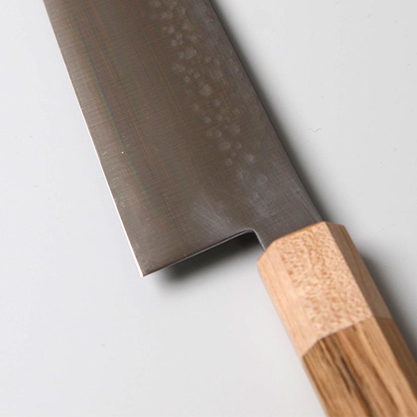 本職用の鋼より少しランクを下げたV金5号の刃を使用して、お求めになりやすい価格を実現したセミプロ向けの和三徳包丁です。