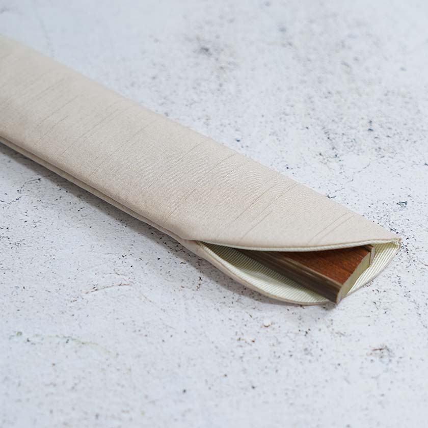 重厚感のある独特の輝きがなんとも印象的ですね。一枚一枚表現が異なる箔を並べて押すことで生まれた複雑な色彩も、奥深い味わいを生み出しています。型はヨーロッパや中国で発達した絹扇子などでよく使われる、骨の面積が広く扇骨の本数も多い45間短地を採用。特別感がありながらも箔の存在感が程よく、洋装やカジュアルなスタイルでもファッション小物としてスタイリッシュに持つことができます。