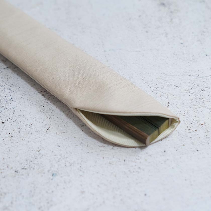 デザインの美しさはもちろんのこと、いい道具を持つ喜びを感じられるのも魅力ですね。箱の中には、仕立てを行った宮脇賣扇庵のリーフレットも添えられています。自分用にはもちろん、ギフトとして贈る際も確かな品質を感じ取ってもらえるでしょう。