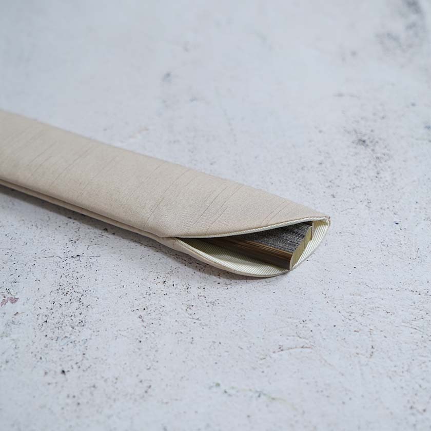 重厚感のある独特の輝きがなんとも印象的ですね。一枚一枚表現が異なる箔を並べて押すことで生まれた複雑な色彩も、奥深い味わいを生み出しています。型はヨーロッパや中国で発達した絹扇子などでよく使われる、骨の面積が広く扇骨の本数も多い45間短地を採用。特別感がありながらも箔の存在感が程よく、洋装やカジュアルなスタイルでもファッション小物としてスタイリッシュに持つことができます。