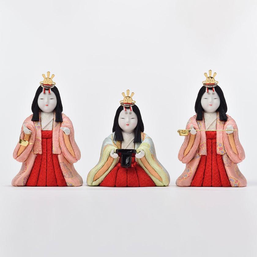 男雛に女雛、三人官女と、全員が子供顔にコロンとしたボディをしており、何とも可愛らしく微笑ましい五人飾りです。