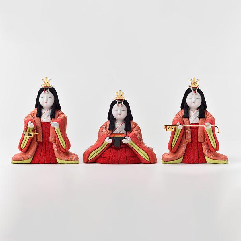 男雛に女雛、三人官女と、全員が子供顔にコロンとしたボディをしており、何とも可愛らしく微笑ましい五人飾りです。