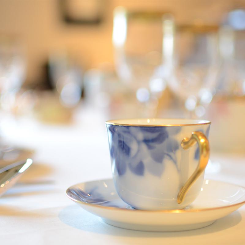大倉陶園独自の「岡染め」技法により白磁に溶け込んだ、優しく咲き誇る紺青の美しさをきっと気に入っていただけるはずです。