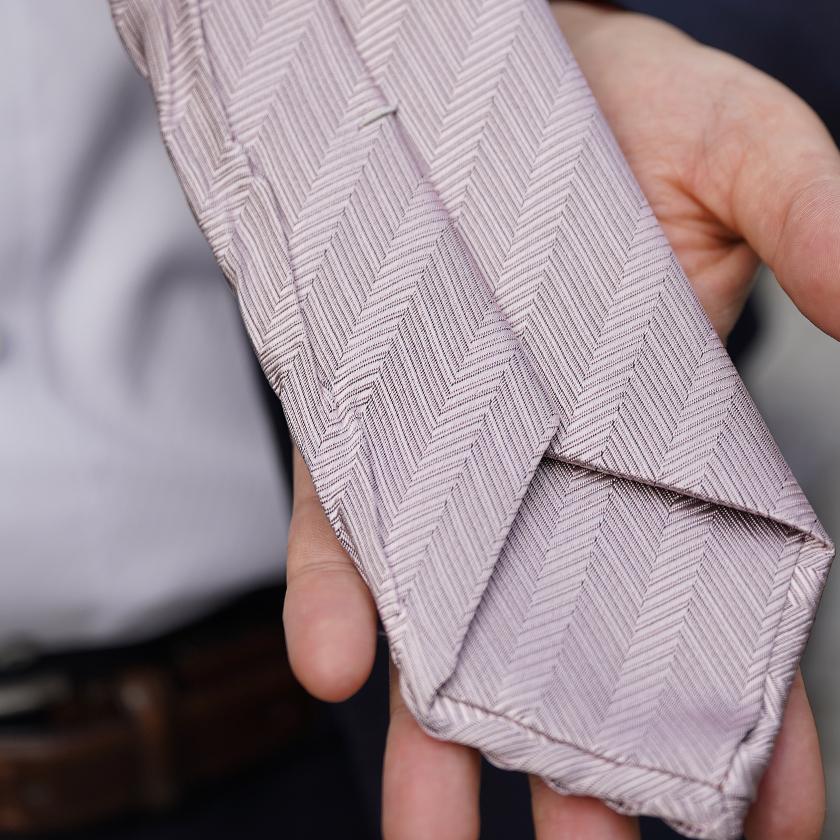【西陣織】Nekado プリーツタイ ヘリンボーン ピンク