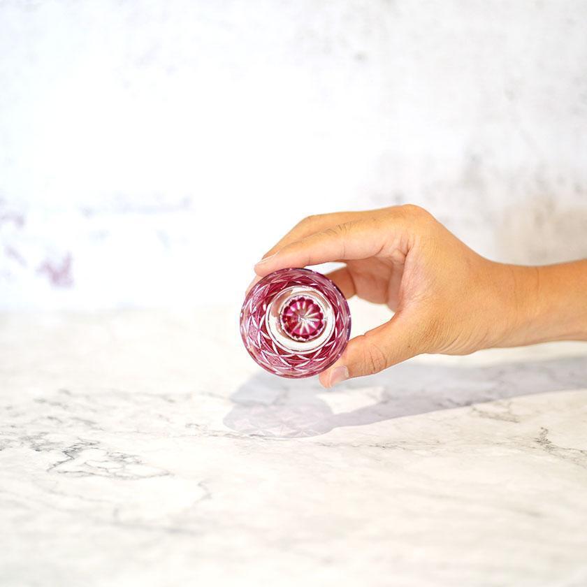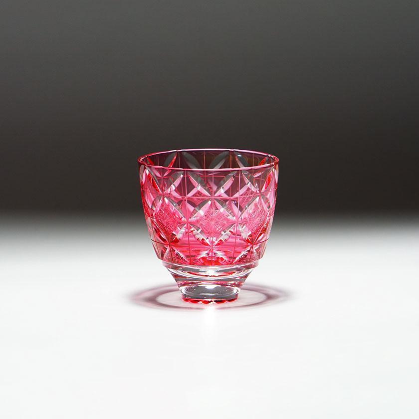 【ぐい呑】菊七宝 -kiku shippo- (金赤)|切子