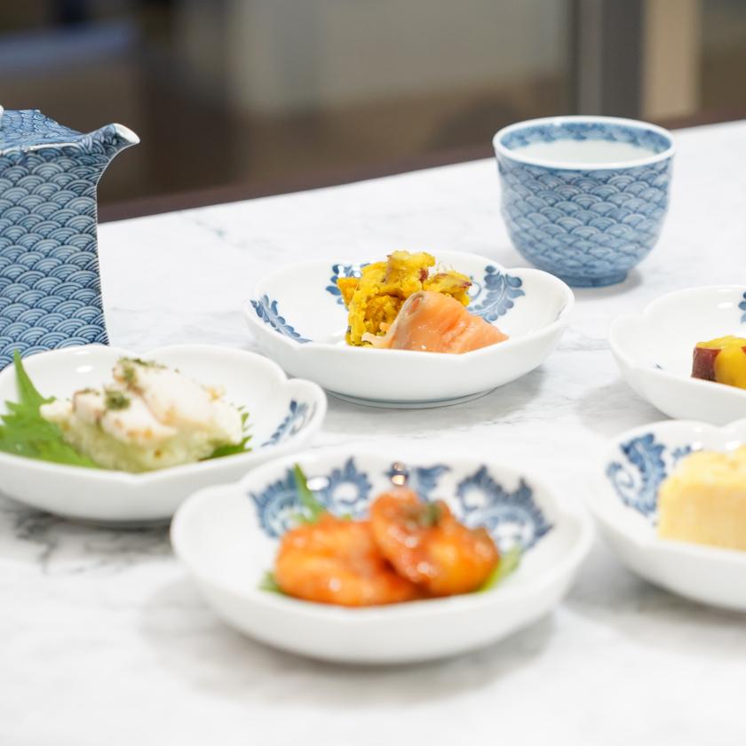 青海波の紋様のロクロ作りの酒盃は、シンプルで使い勝手が良いデザインです。