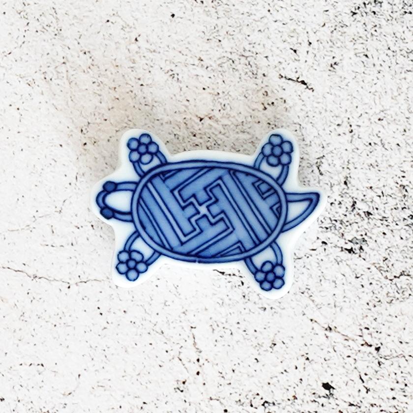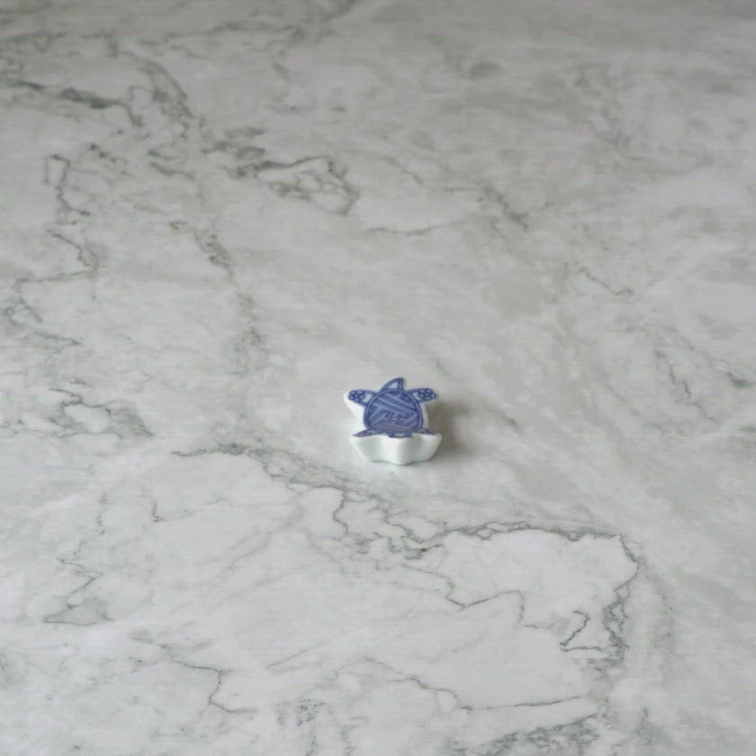 かわいい小亀が紋様を背負った箸置きで、厚さが1cm程あるので扱いやすい作りになっています。