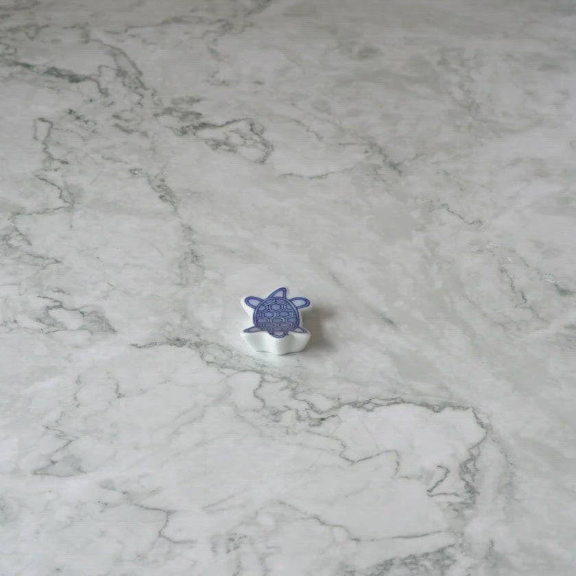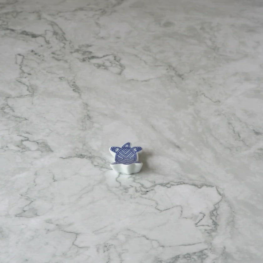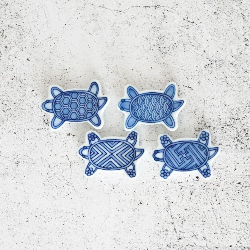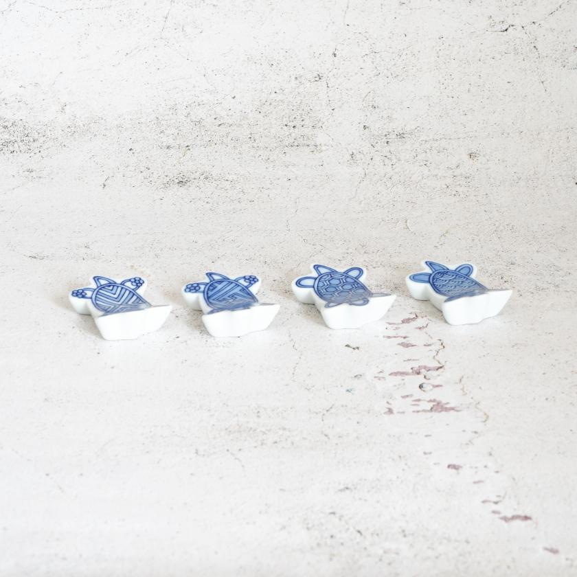 かわいい小亀が紋様を背負った箸置きで、厚みが約1cmあるので扱いやすい作りになっています。